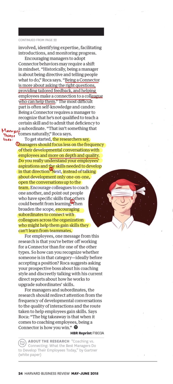- Connector managers. The managers give targeted feedback in the area they accountable for it. For the development outside manager’s expertise, they will connect to other team member or colleagues who has expertise in particular area that the team member should improve. The managers spend more time in assessing, the skills, needs, and interest of their employee. This approach was found to be the most effective to increase employee performance. According to the research, the subordinate of connector managers was likely give three time higher performance than the other three coaching approach.